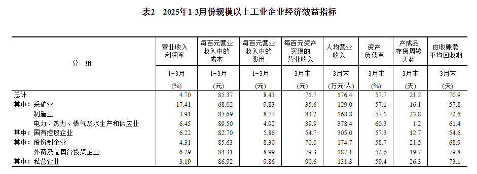 3月末,规模以上工业企业应收账款25.59万亿元,同比增长9.9%;产成品存货6.55万亿元,增长4.2%。