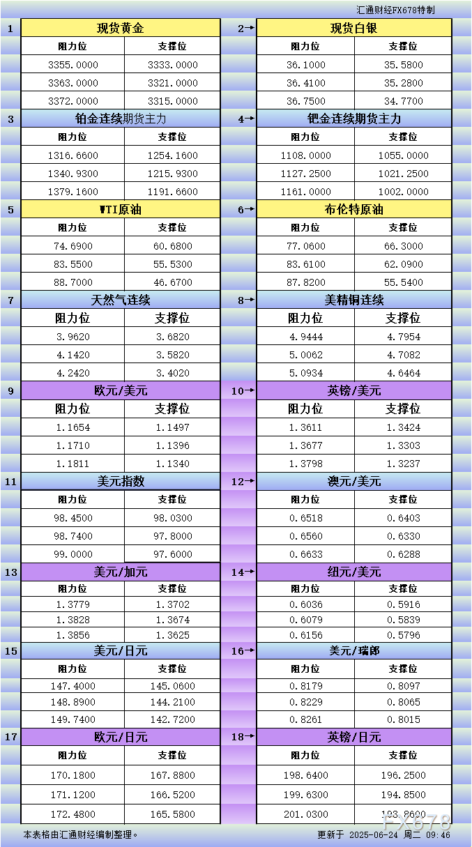 嘉盛app下载:6月24日亚市更新支撑阻力:18品种支撑阻力(金银铂钯原油天然气